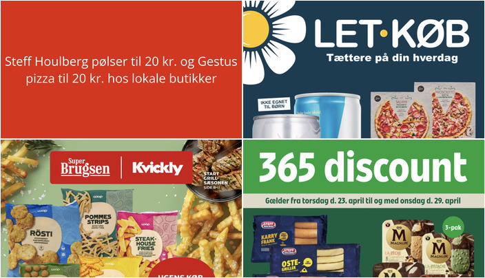 Coop365 tilbyder Steff Houlberg pølser i flere varianter, herunder karry frank, oste-griller og hotdog pølser til kun 20 kr. pr. pakke. Pakkerne vejer 300-400 g med en kg-pris på maks. 66,67 kr. Tilbuddet gælder fra torsdag den 23. april til onsdag den 29. april.